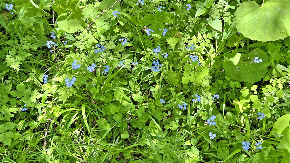 6/5 10:40 エゾムラサキ ワスレナグサの仲間で、花言葉は「私を忘れないで」「誠の愛」。