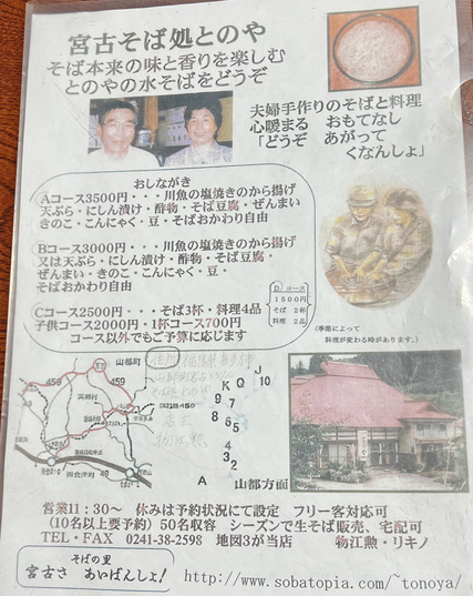 6/27 11:30 お品書き Aコース3,500円、Bコース3,000円、Cコース2,500円。AとBはそば食べ放題だが、そんなに食べられないのでCコースをチョイス。