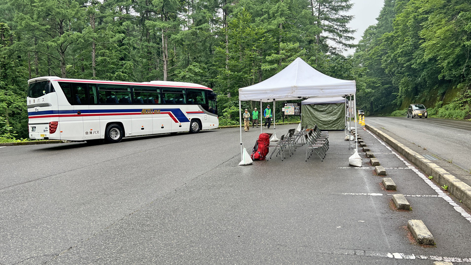 6/27 13:35 雄子沢川駐車場 ニッコウキスゲの時期は駐車場が閉鎖され、ラビスパ裏磐梯からシャトルバスでアプローチ。バス代片道1,000円、協力金500円。