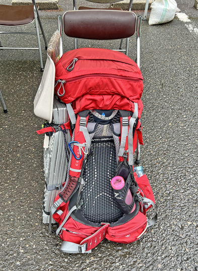 6/27 13:45 ザック テントは不要だが、食材を豪華にしたので21kgになった。