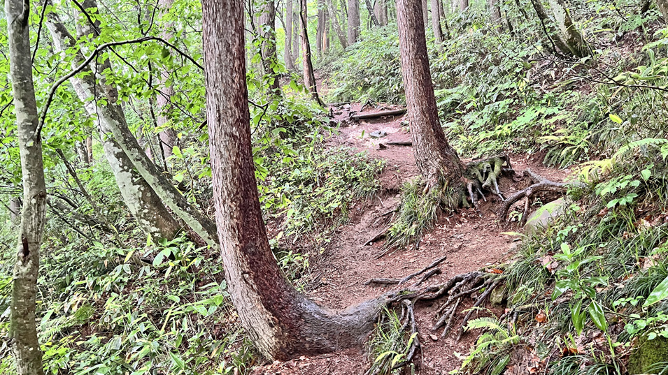 6/27 13:45 せせらぎ探勝路 標高差200m、コースタイム1時間10分の「雄国沼せせらぎ探勝路」。急登のない歩きやすい道だ。