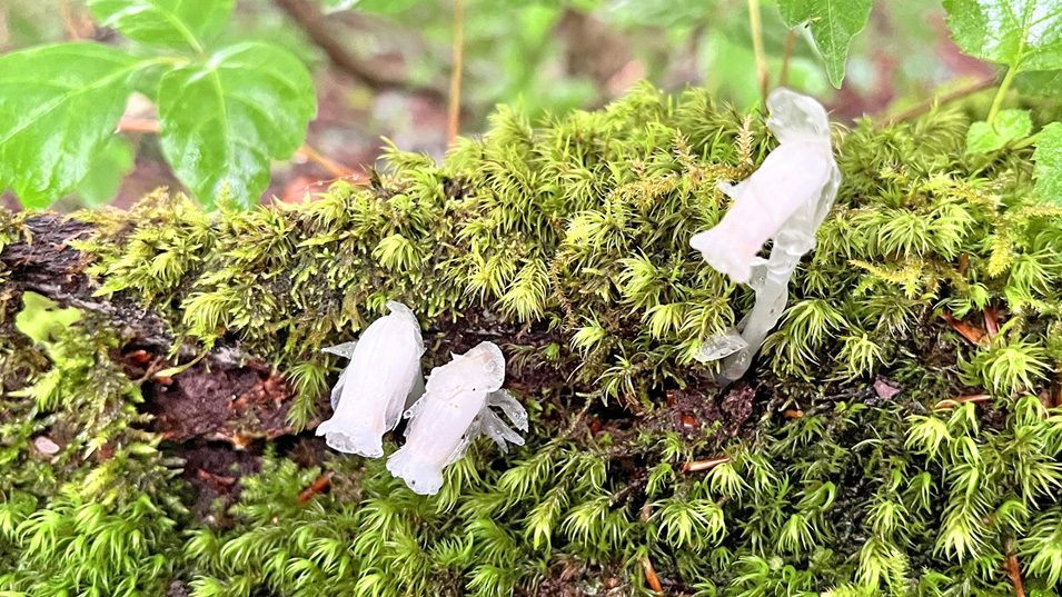 6/27 13:55 ギンリョウソウ 葉緑素を持たない植物・ギンリョウソウ(銀竜草)。幽霊茸とも呼ばれるがキノコではない。花言葉は「はにかみ」「そっと見守る」。