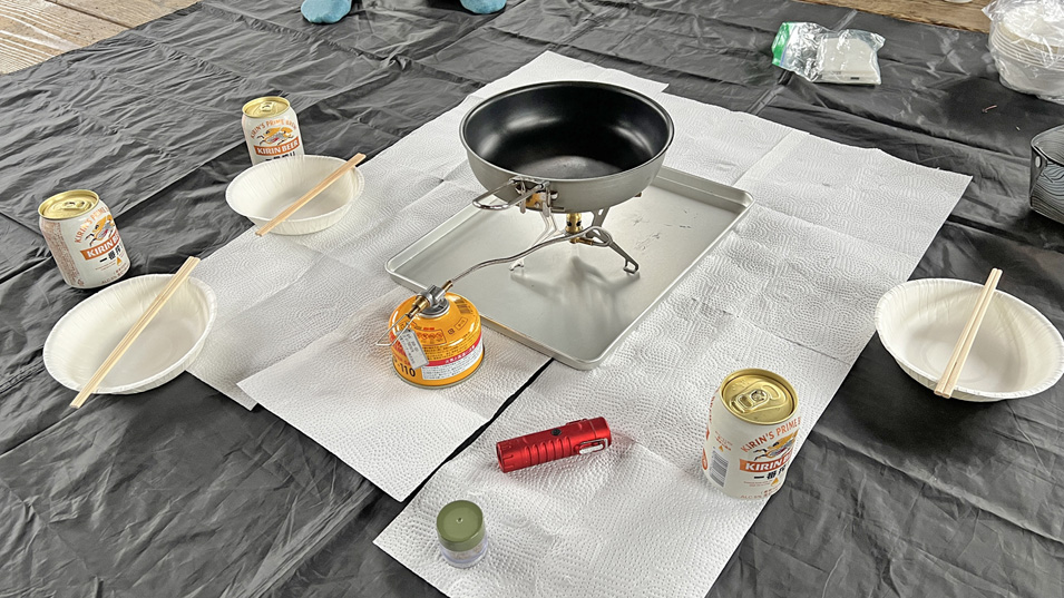 6/27 16:45 油はね対策 前回の教訓を生かし、キッチンペーパーで油はね対策。