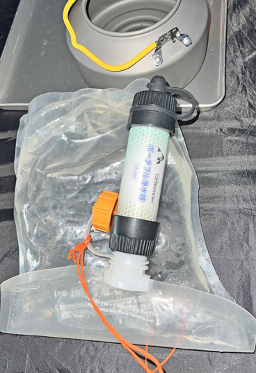 6/28 4:25 浄水器 水場の水をそのまま飲んでも問題無いが、たまには使わないといけないので浄水器を使用。