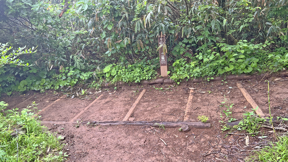 6/28 7:15 分岐 右に登ると金沢峠、左に下ると雄国沼湿原。