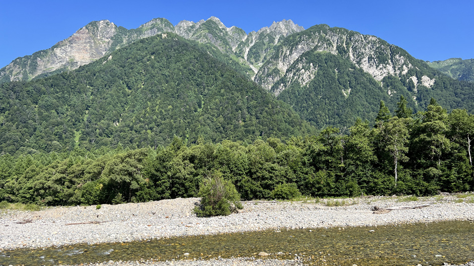 7/31 8:45 明神岳 右から1峰,2峰,3峰,4峰,5峰。