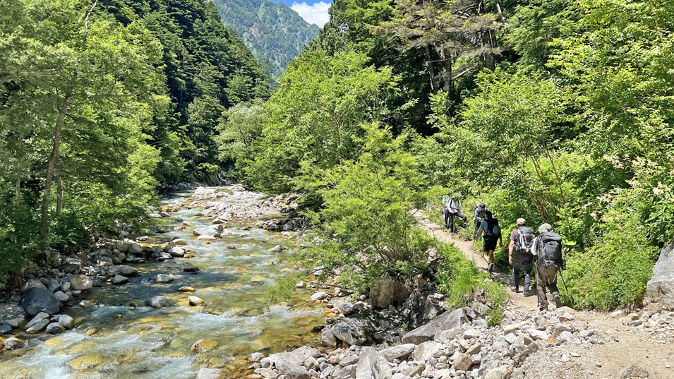 7/31 11:45 槍沢ルート 晴天に恵まれ、多くの登山者が行き交う槍沢ルート。