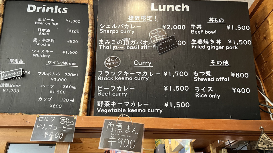 7/31 12:30 ランチメニュー カレーのバリエーションが充実している。