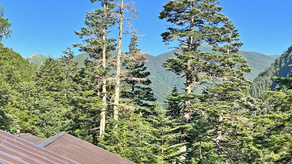7/31 16:00 常念山脈 2階の談話室の窓からは常念山脈が見える。左端が常念岳、右端が蝶ヶ岳。