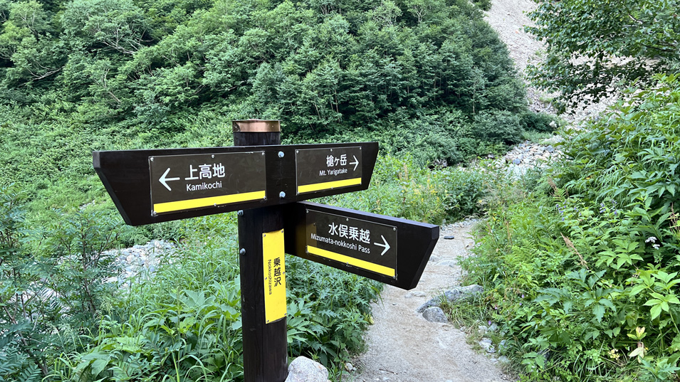 8/1 5:45 大曲 水俣(みずまた)乗越への分岐点「乗越沢」。「大曲」の方が馴染んでいる。