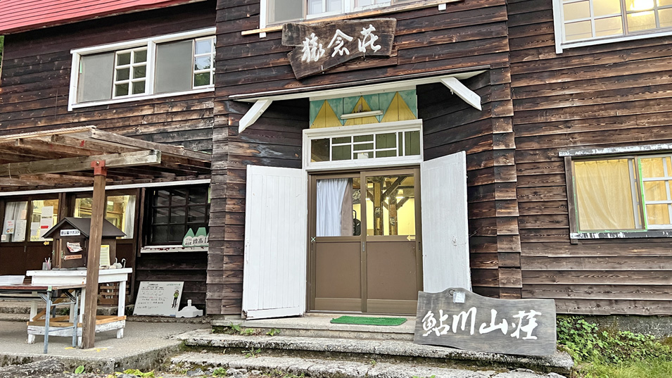 8/20 5:15 鮎川山荘 猿倉荘は2024年の山岳ドラマ「マウンテンドクター」の舞台になった山小屋で、「鮎川山荘」の看板が今でも残っている。