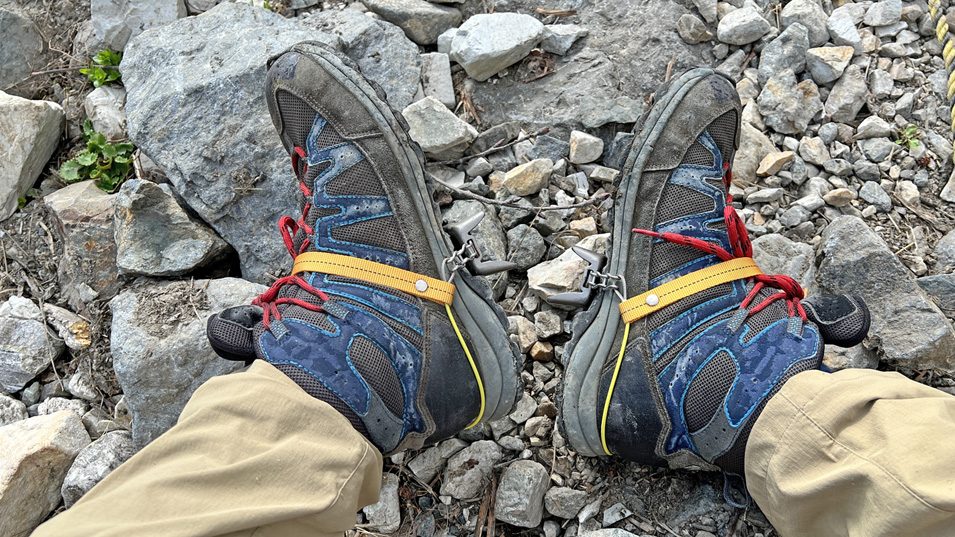 8/20 7:25 軽アイゼン ここから先は雪渓が連続しているようなので、軽アイゼンを装着する。