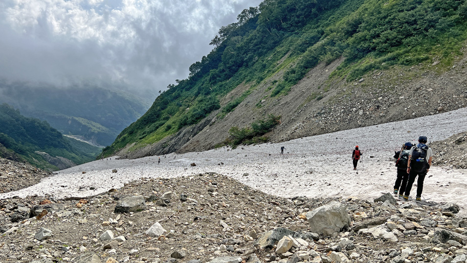 8/20 8:20 上陸 ここから秋道に入るがズルズルの急登で歩きにくい。
