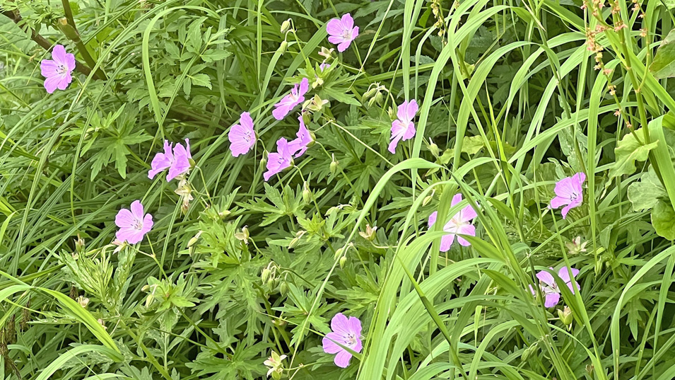 8/20 9:20 ハクサンフウロ 白山風露。白山で発見され、花びらの上の露が風で転がる様から名付けられた。花言葉は「変わらぬ信頼」「気高い心」「健気」。