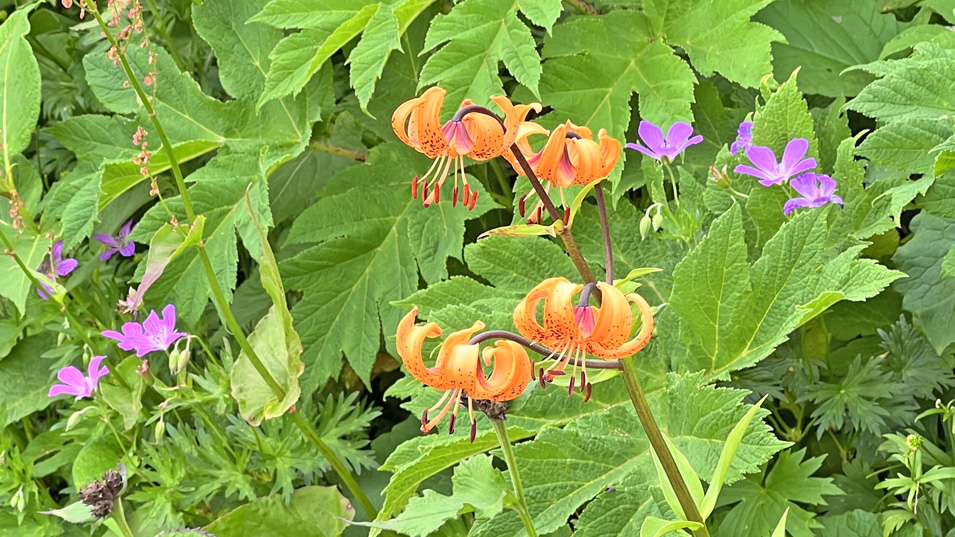 8/20 11:00 クルマユリ 鮮やかなオレンジ色の車百合。花言葉は「華麗」「私の心の燃える想い」「飾らぬ美しさ」。