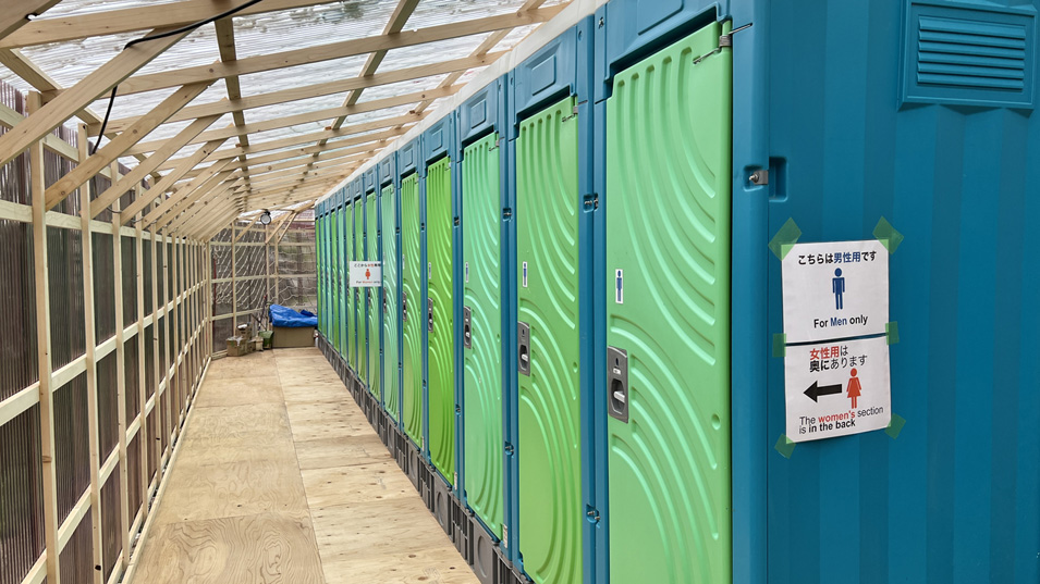 8/20 12:40 トイレ 流石に日本最大の山小屋。男性用6室、女性用8室の個室がある。このほか男性用の小用が3室ある。
