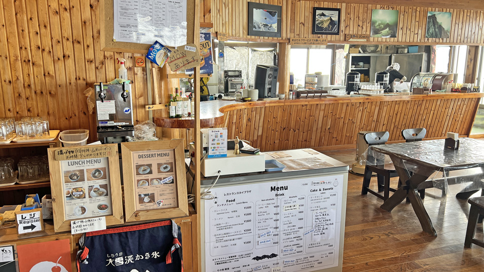 8/20 12:50 レストラン とても山小屋とは思えない広くて立派なレストラン「スカイプラザ」。