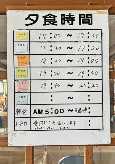 8/20 17:00 夕食時間 夕食は40分ずつ最大6回戦のようだが、今日は200人とのことで、2回戦だった。