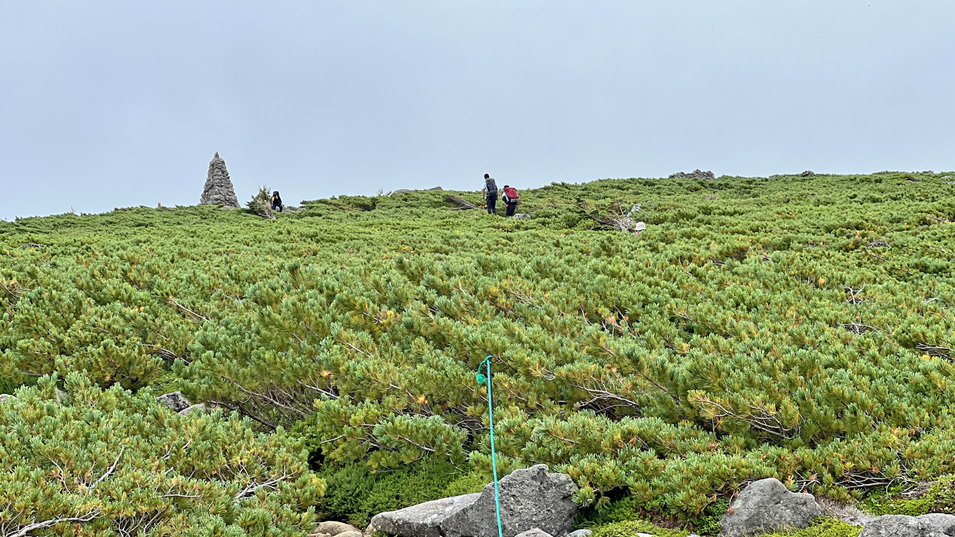 8/21 9:20 ハイマツ帯 大池と乗鞍岳周辺はハイマツ帯で岩ゴロの道が続く。