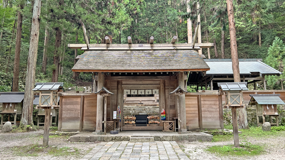 8/21 16:10 神門 国宝にしては地味な神社。見えているのは神門と拝殿。国宝は拝殿の奥の中門・釣屋・本殿。