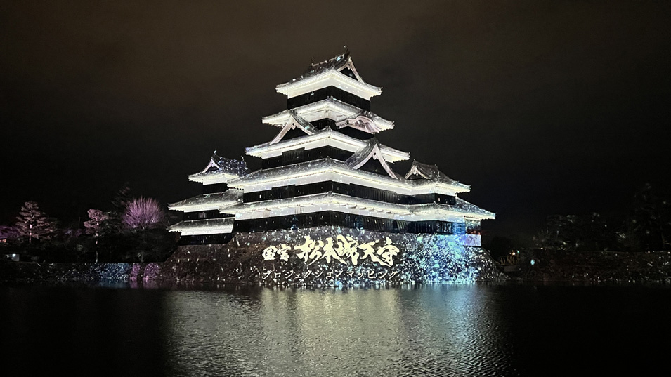 12/18 18:35 松本城 国宝・松本城のプロジェクションマッピングを鑑賞。気温2℃。