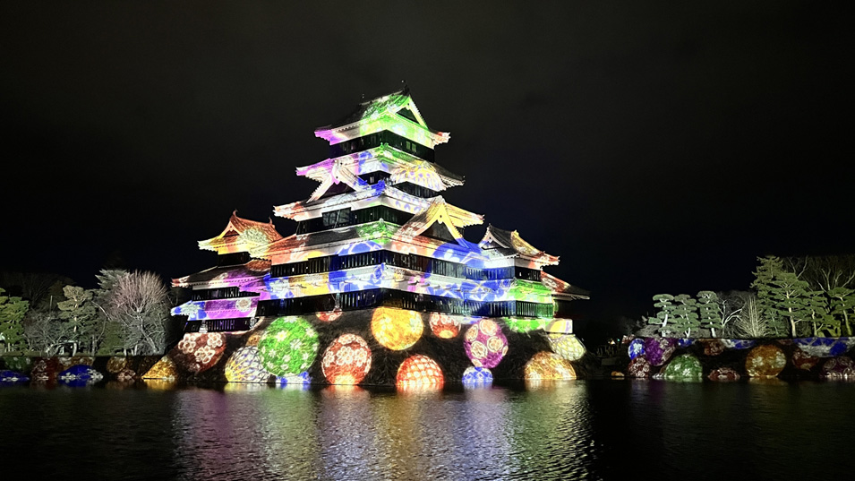 12/18 18:40 松本城 今年の1月と2月に観たが、今回はずいぶんかわいらしい演出だった。