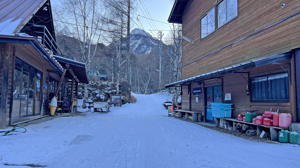 12/19 7:55 美濃戸 美濃戸口から1時間10分で美濃戸に到着。ここで最初の休憩。