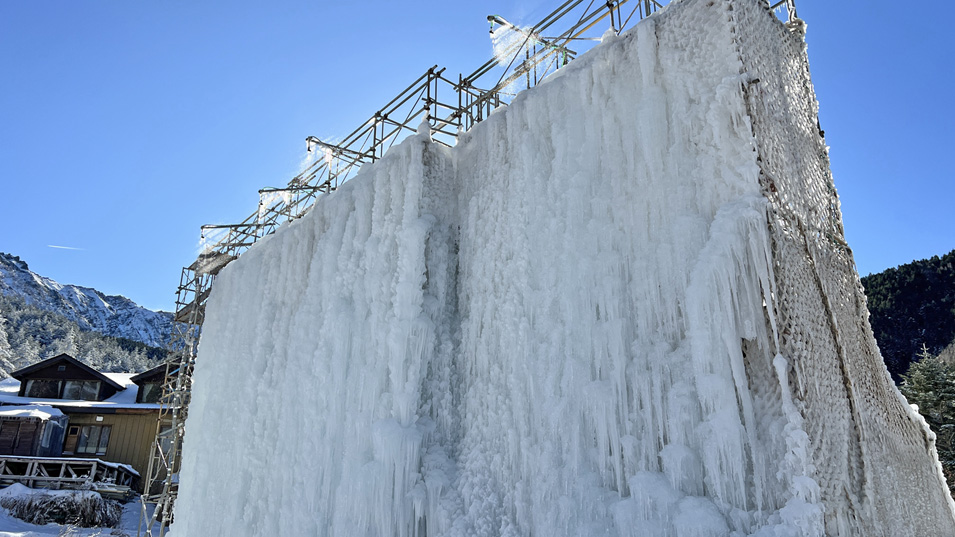 12/19 10:25 アイスキャンディー アイスクライミング練習用の人口氷瀑・アイスキャンディー。表側は完成間近。