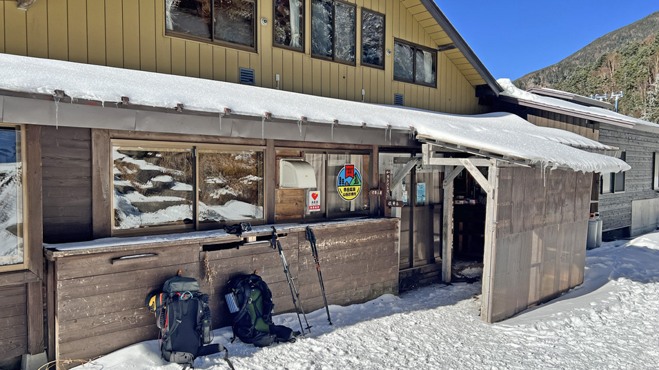 12/19 10:30 赤岳鉱泉 通年営業の赤岳鉱泉。200人収容。お風呂は冬季休業中。