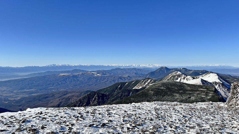 12/19 14:05 北八ヶ岳 天狗岳、北横岳、蓼科山、美ヶ原、車山。さらに北アルプスの山々。