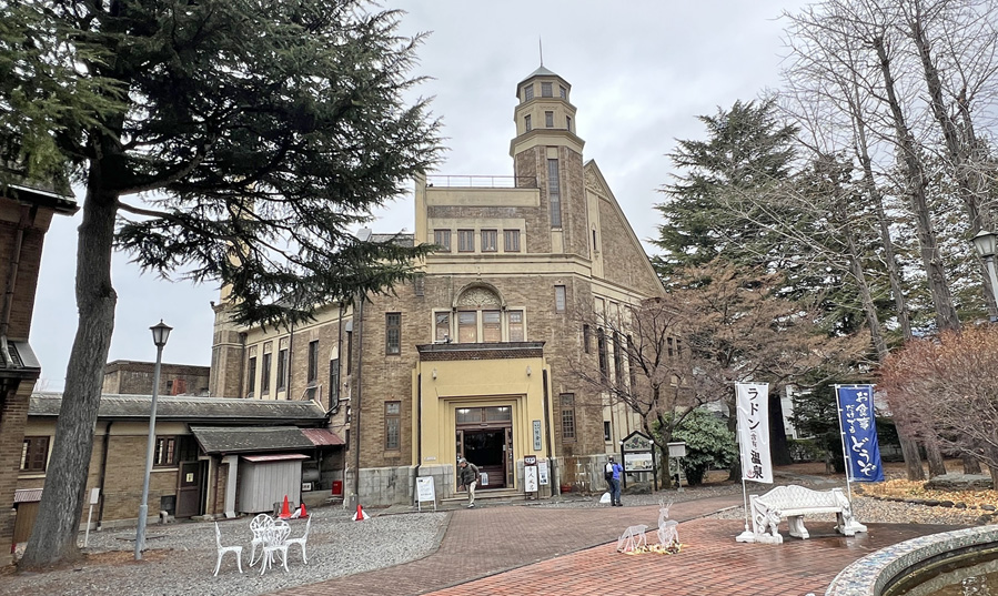 12/20 12:10 片倉館 八ヶ岳帰りの定番、諏訪湖温泉「片倉館」で温泉。昭和3年に完成した国の重要文化財だ。気温+6℃。