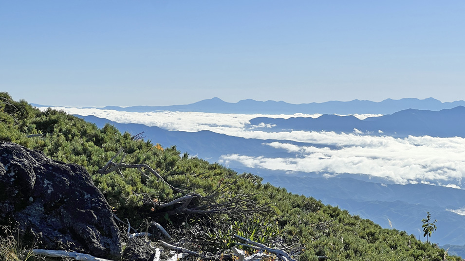 9/6 7:35 八ヶ岳 金剛童子から八ヶ岳。見慣れない角度なのでわかりにくい。