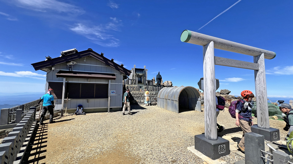 9/6 10:35 御嶽神社 左は御嶽神社の社務所。噴火の際は生死を分けた建物だった。