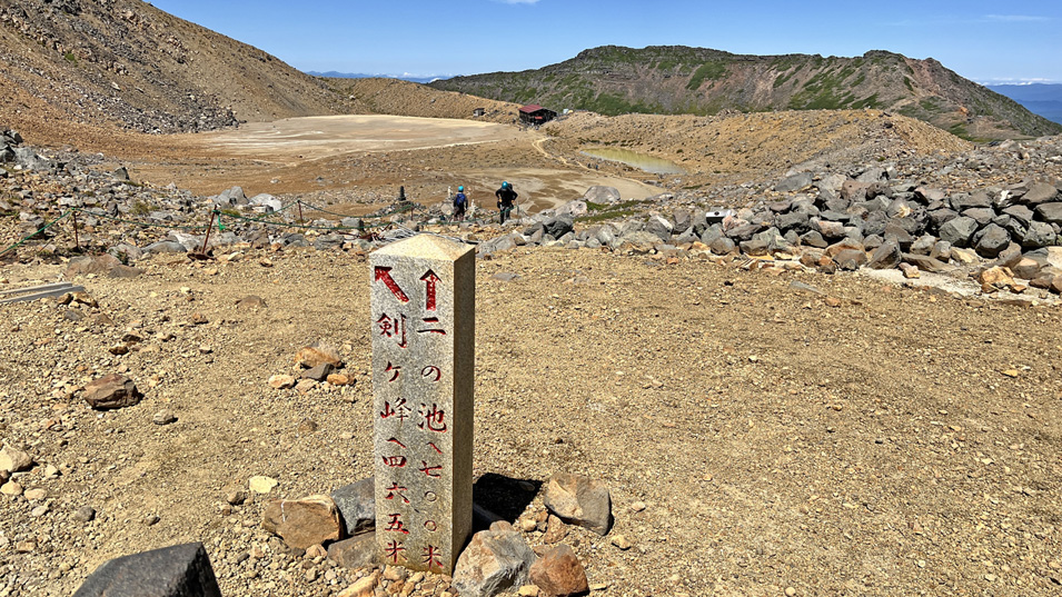 9/6 11:10 黒沢十字路 黒沢口、剣ヶ峰、二ノ池、王滝頂上への道が交差する黒沢十字路。
