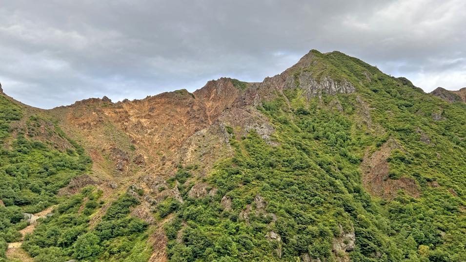 9/19 6:55 朝日岳 荒々しい山肌の朝日岳(1896m)。