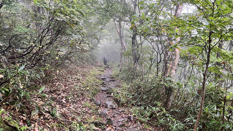 9/20 7:25 樹林帯 しばらくは樹林帯なので雨もあまり落ちてこない。