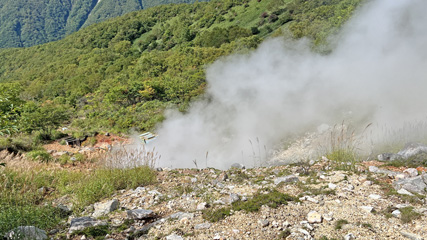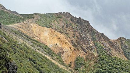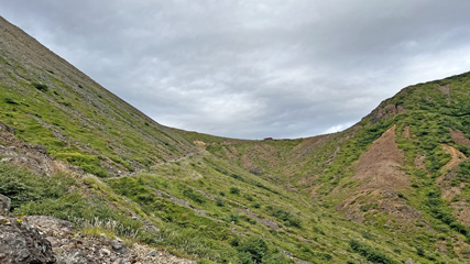 朝日岳北側の爆裂火口。