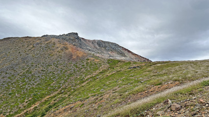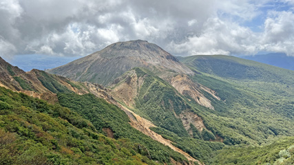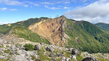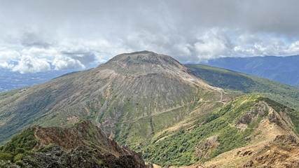 朝日岳山頂から茶臼岳。このアングルだと茶臼っぽい。