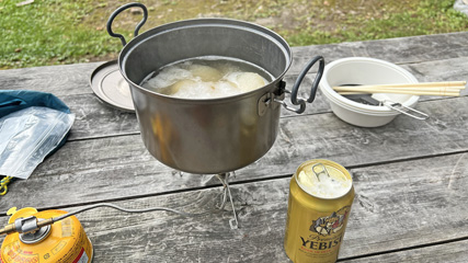 ランチは担いで来たおでんと小屋で買ったビール。大黒屋だけにビールはエビス1択。